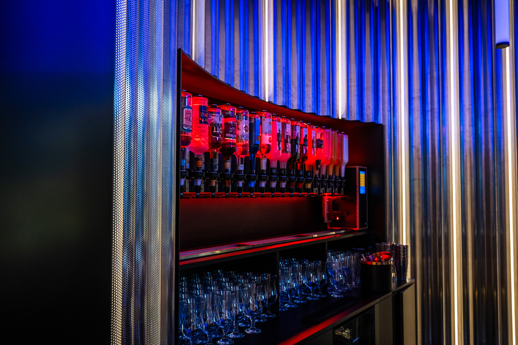 Für die Zubereitung der Cocktails werden die Zutaten direkt aus handelsüblichen Flaschen gezapft. Diese können frei gewählt und bezogen werden. Es werden keine Kanister, Schläuche oder Pumpen verwendet.