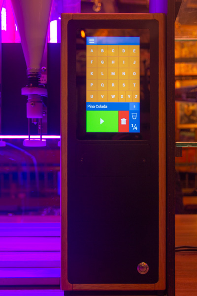 Die Bedienung erfolgt über einen Touchscreen. Die Benutzeroberfläche ist intuitive und effizient gestaltet. Sämtliche Cocktails sind alphabetisch abrufbar und werden mit wenigen Handgriffen zubereitet. Die Bedienung ist innerhalb von wenigen Minuten erlernt.